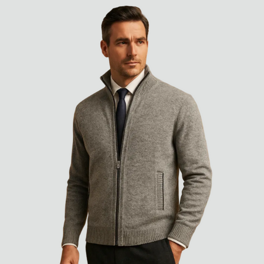 Gebreid Heren Vest Met Ritssluiting en Opstaande Kraag