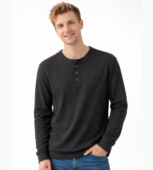 Heren Geribde Henley Shirt Met Lange Mouwen En Knoopsluiting