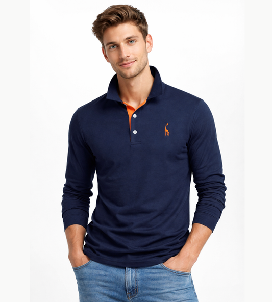 Heren Klassieke Longsleeve Polo Met Knoopsluiting