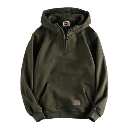 Vintage Hoodie Heren Half Zip Zacht en Warm met Voorvak