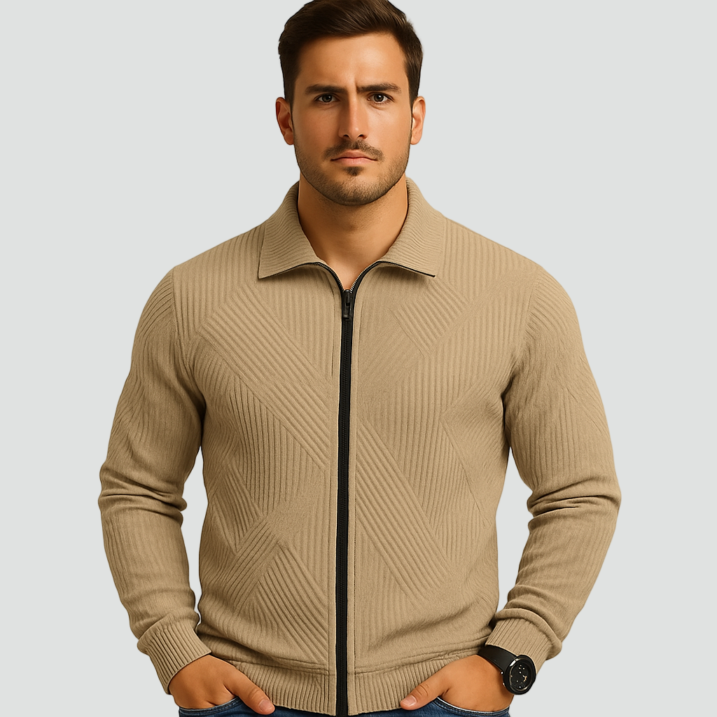 Dit moderne heren vest combineert ultiem draagcomfort met een stijlvolle, verfijnde uitstraling. Het unieke geribde textuurpatroon geeft het vest een luxe en eigentijdse look, terwijl de volledige ritssluiting zorgt voor praktisch gebruiksgemak. De zachte en elastische stof biedt warmte zonder in te leveren op bewegingsvrijheid, ideaal voor zowel casual outfits als nette, gelaagde looks. Een veelzijdig kledingstuk dat moeiteloos past in elke garderobe.