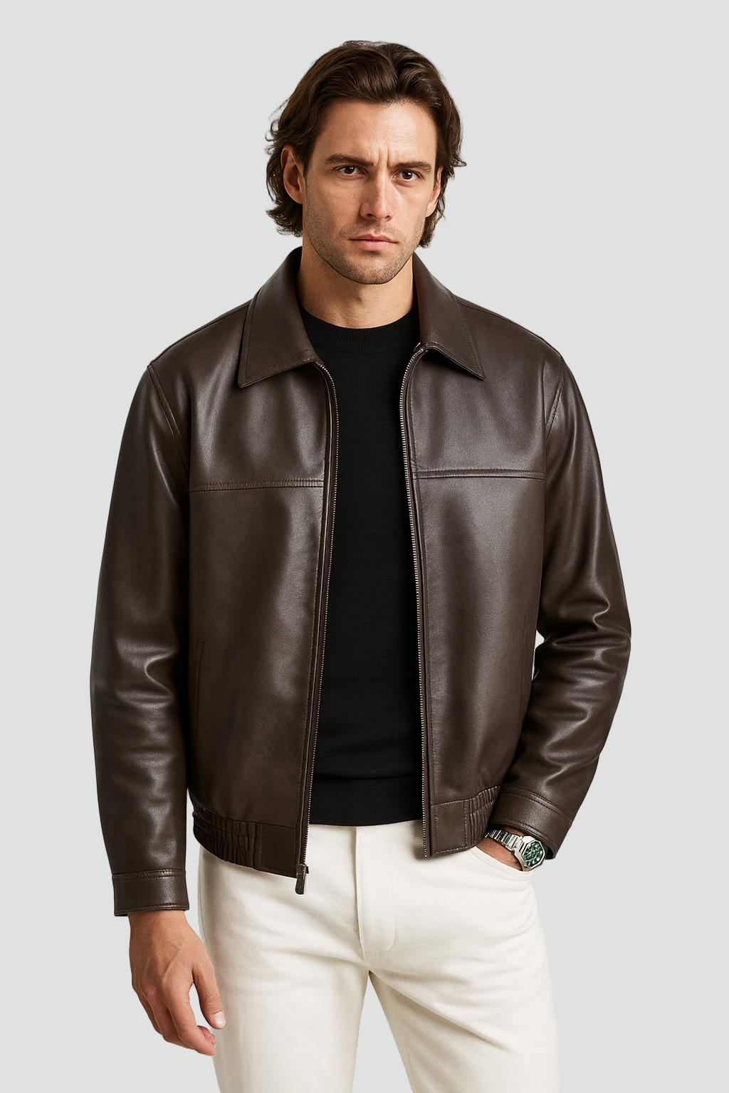 Deze stijlvolle leren jas voor heren combineert een moderne uitstraling met tijdloze klasse. De gladde lederlook geeft de jas een luxe en verfijnde finish, perfect voor zowel casual als meer geklede outfits. De rechte kraag zorgt voor een strakke, minimalistische look, terwijl de ritssluiting het geheel praktisch en elegant maakt. Dankzij de comfortabele pasvorm zit de jas prettig gedurende de hele dag. Ideaal voor heren die moeiteloos stijl en comfort willen combineren.