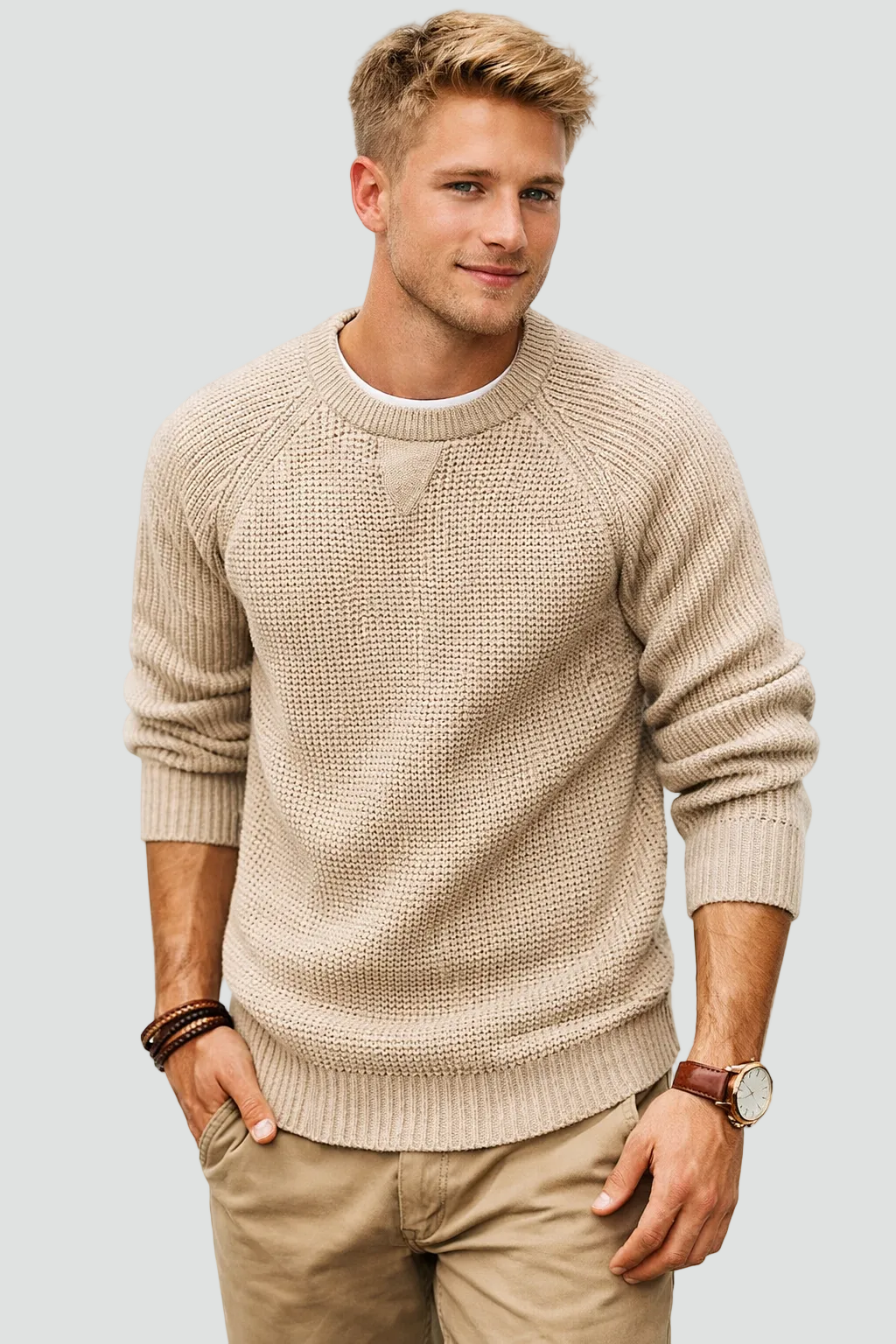 Deze heren structuurgebreide trui met raglanmouwen en ronde hals combineert een robuuste uitstraling met verfijnd comfort. De rijke gebreide textuur geeft de trui een luxe en moderne look, terwijl de raglanmouwen zorgen voor extra bewegingsvrijheid en een sportief accent. Perfect voor dagelijks gebruik en eenvoudig te stylen met zowel casual als nette outfits.