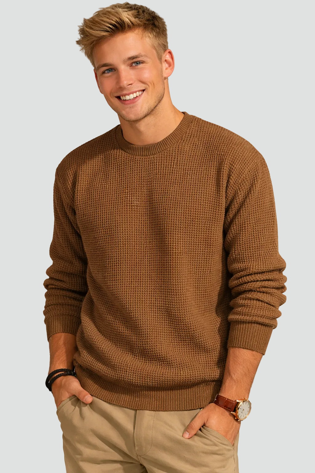 Deze heren wafelgebreide trui met ronde hals combineert comfort met een stijlvolle, relaxte uitstraling. De subtiele wafelstructuur geeft de trui een moderne en luxe look, terwijl de losse pasvorm zorgt voor optimaal draagcomfort. Ideaal voor dagelijks gebruik, zowel casual als licht gekleed, en eenvoudig te combineren met jeans of chino’s.