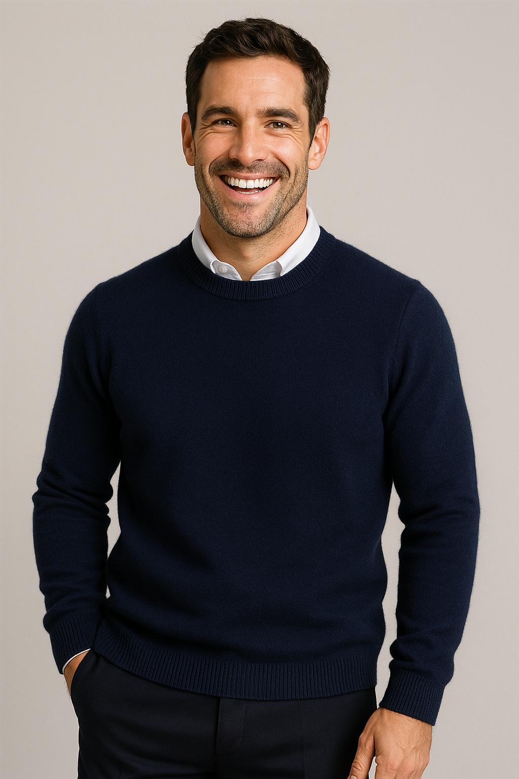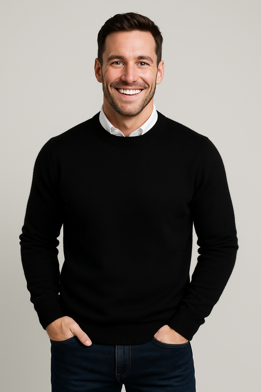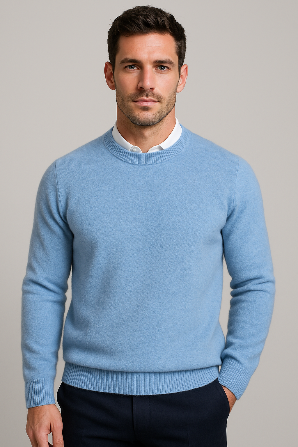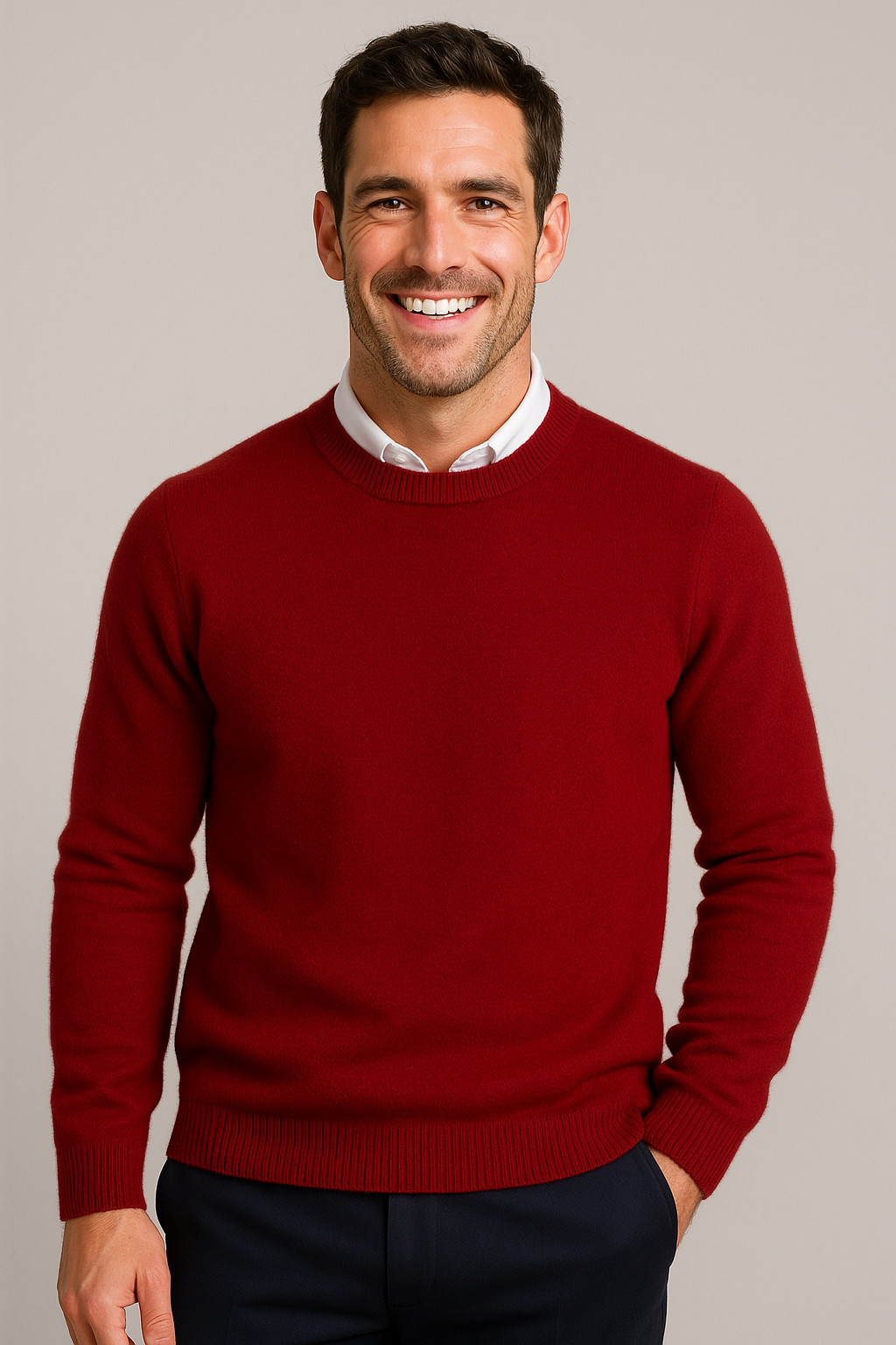 Deze klassieke heren trui met ronde hals is een tijdloze keuze voor een nette, verzorgde look en scoort hoog op comfort voor dagelijks gebruik. De geribde boorden zorgen voor een mooie pasvorm en een strak silhouet, ideaal voor een smart casual outfit naar werk of in het weekend. Toon de trui in een recht vooraanzicht op model zodat de halslijn, schouderlijn en boorden duidelijk zichtbaar zijn en de pasvorm direct overtuigt. Perfect te combineren met een overhemd voor kantoor of met een chino en sneakers voor een moderne, casual stijl.