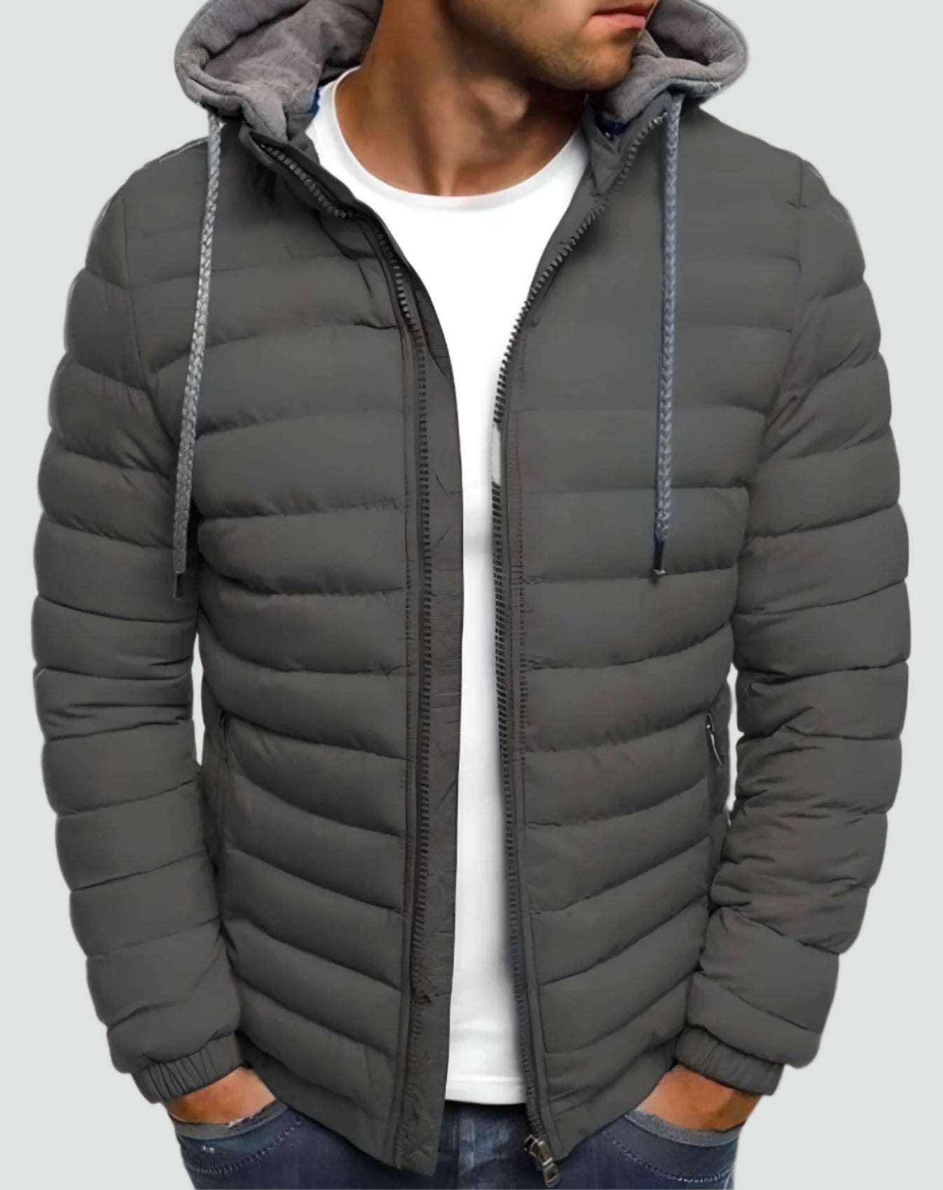 Deze lichte heren pufferjas met capuchon en ritssluiting biedt comfortabele warmte en een moderne uitstraling voor het voor- en najaar. Het gestroomlijnde design zorgt voor een sportieve, tijdloze look, terwijl de zachte voering perfect is voor wisselvallig weer. De verstelbare capuchon en praktische ritssluiting maken deze jas ideaal voor dagelijks gebruik en actieve momenten buitenshuis.